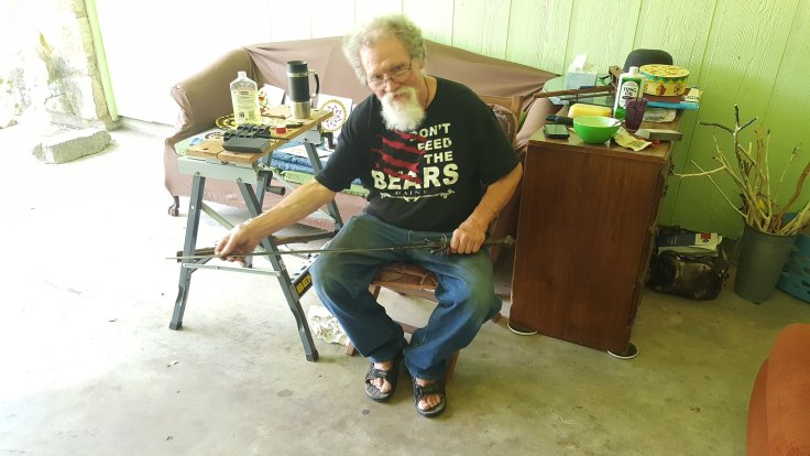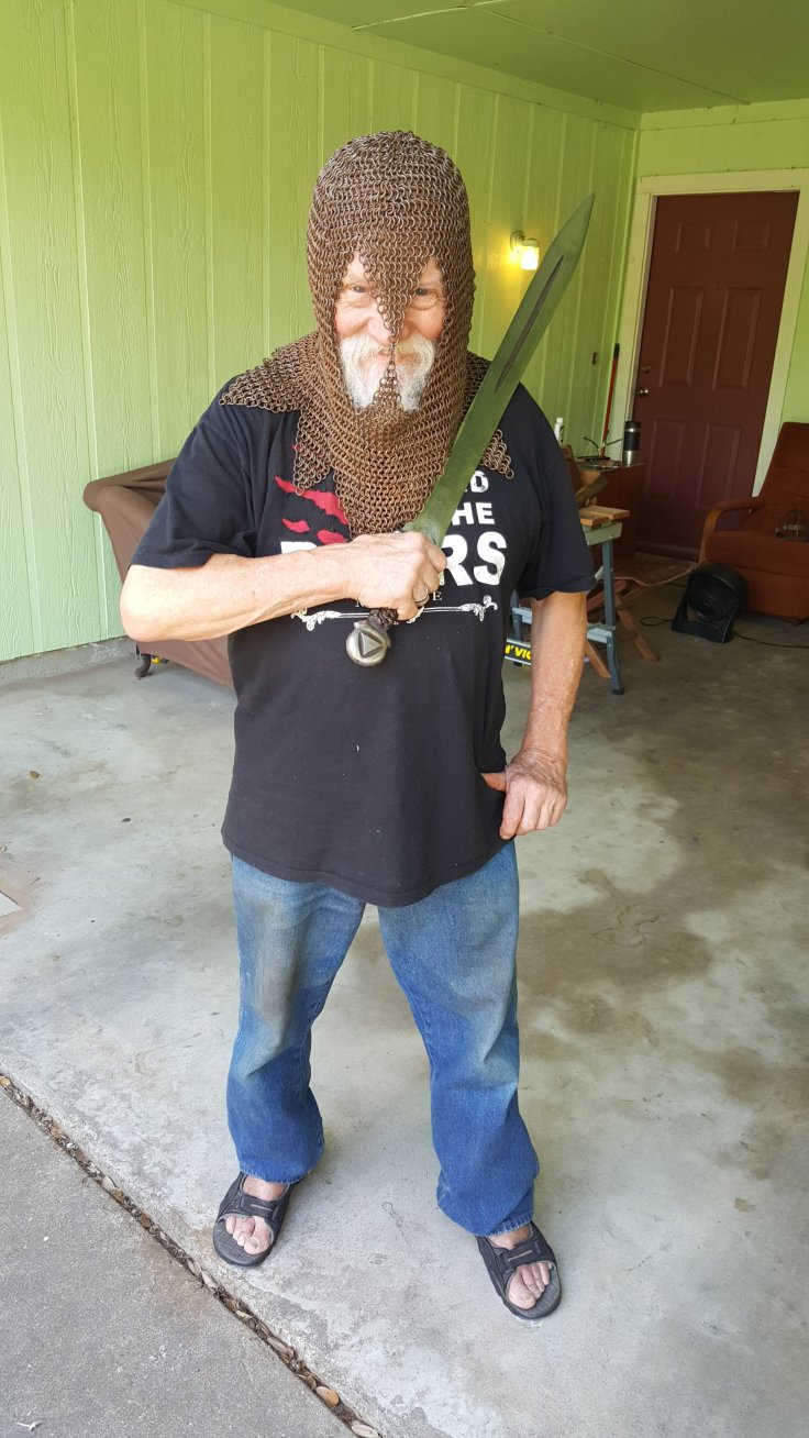Actually, the weather wasn’t too bad, and I got a lot of polishing done on my swords and made some good progress with my latest dijeridoo. My daughter even tried her hand at the grinder, polishing one of my swords in progress.